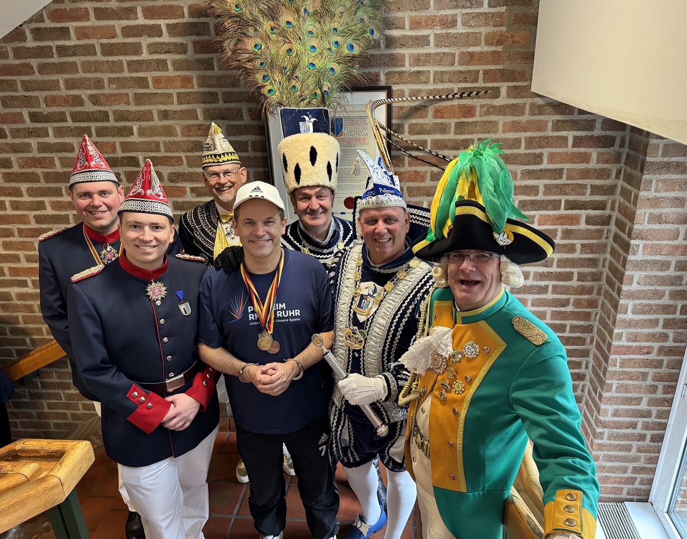 Dabei ging es in diesem Jahr sportlich zu: Pulheim gehört zu den Kommunen an Rhein und Ruhr, die sich gemeinsam um die Austragung der Olympischen und Paralympischen Sommerspiele für das Jahr 2036, 2040 oder 2044 bewerben. Am 19. April 2026 können die Bürgerinnen und Bürger in einem Ratsbürgerentscheid darüber abstimmen, ob sie Olympia in Pulheim befürworten. Passend dazu war Bürgermeister Keppeler mit einem T-Shirt bekleidet, das das Bewerberlogo der Stadt Pulheim zierte. Auch einen ganzen Medaillensatz konnte er präsentieren. „Pulheim bietet schon heute zahlreiche Sportmöglichkeiten – von Kunstrasenplätzen über die neue Tartanbahn in Stommeln bis hin zum Hallen- und Freibad sowie dem Bike- und Skatepark“, sagte er zu seiner Verteidigung angesichts der närrischen Herrschaft. Gegen Auflagen wurde Bürgermeister Keppeler freigelassen.