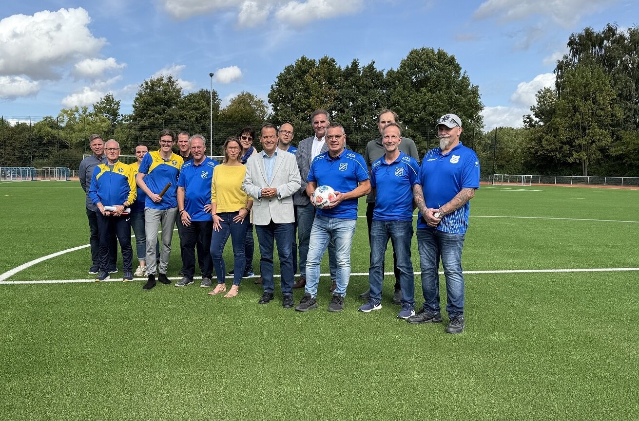 „Der Sportpark Stommeln ist jetzt das neue Herzstück für den Sport im Mühlenort – wie wir dies vor einem Jahr zugesagt haben“, sagte Bürgermeister Frank Keppeler bei der kleinen Eröffnungsfeier des Sportparks, der auch von den Schülerinnen und Schülern der Christinaschule und der Papst-Johannes XXIII.-Schule genutzt werden wird. Mit dem Abschluss der aufwendigen Arbeiten steht nun allen Fußballvereinen im Stadtgebiet ein Kunstrasenplatz zur Verfügung.