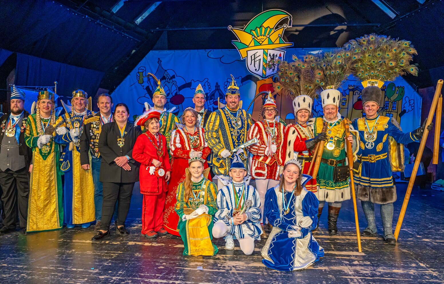 Zum großen Finale schunkelten dann alle Tollitäten mit ihrem Gefolge gemeinsam auf der Bühne und zeigten damit den großen Zusammenhalt der Karnevalisten.